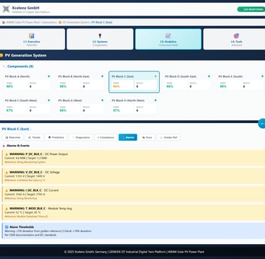 Entwickelt für intelligente Energie- und Industrieanlagen lernt GENEXIX kontinuierlich aus Echtzeitdaten, prognostiziert Leistung, optimiert den Betrieb und unterstützt fundierte Entscheidungen – von einzelnen Aggregaten bis hin zu kompletten Industrieanlagen.